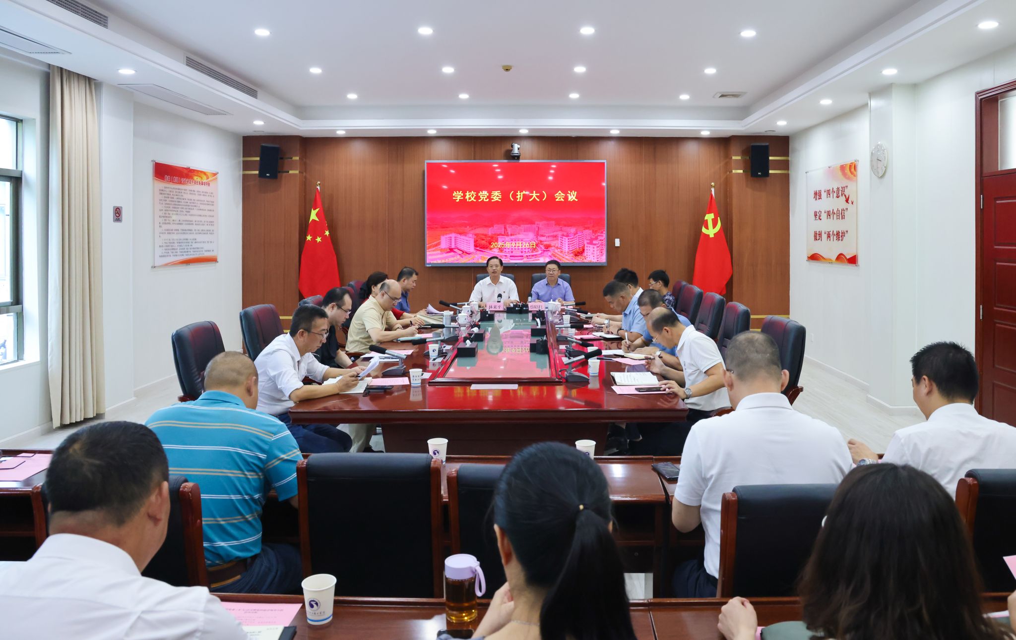 9月26日,我校召開黨委(擴大)會議,同時套開學校黨的建設工作領導小組會議,深入學習貫徹習近平總書記關于深入貫徹中央八項規定精神學習教育的重要指示精神,認真落實中央、省委和市委黨的建設工作領導小組會議精神,總結...